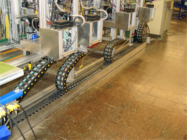 1、適合于使用在往復運動的場合,能夠對內置的電纜、油管、氣管、水管等起到牽引和保護作用。2、拖鏈每節都能打開,便于安裝和維修。運動時噪音低、耐磨、可高速運動。3、拖鏈已被廣泛應用于數控機床、電子設備、石材機械、玻璃機械、門窗機械、注塑機、機械手、起重運輸設備、自動化倉庫等。