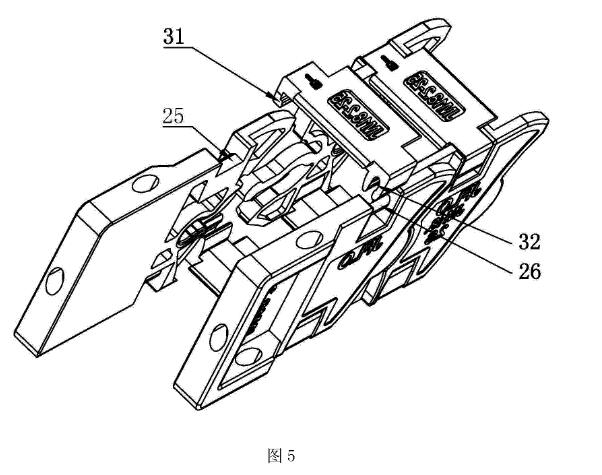 3.根據權利要求2所述的新型的塑料拖鏈,其特征在于:所述定位卡條呈波浪形設置,其一端一體連接于兩擺動滑塊間,另一端設置有球形定位塊,所述定位凹槽呈用于過盈卜接定位塊的半球形設置,該定位凹槽開設有用于卡接定位卡條的收縮缺口。