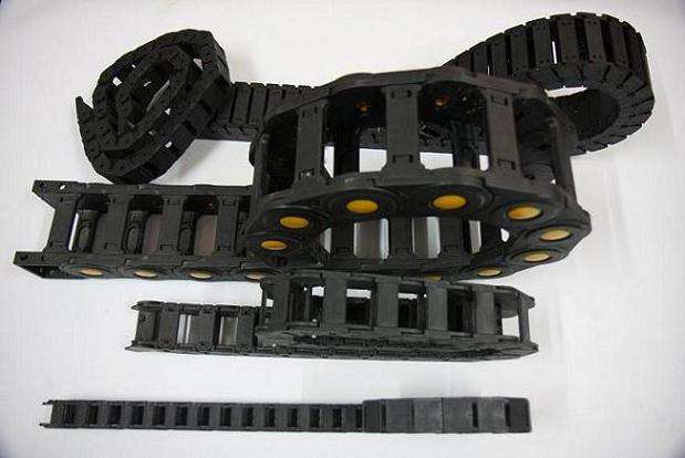很多時候客戶會問我,你們的塑料拖鏈是全尼龍的嗎?也許在他印象里尼龍拖鏈要是全尼龍的會更好。其實不是這樣子的,尼龍拖鏈一般選擇尼龍料加玻璃纖維組成原材料,常用的有尼龍66與尼龍6這兩種。而原材料又分為原包塑料與再生塑料兩種,尼龍含量的多少決定了拖鏈的使用強度、耐磨性以及運行的噪大小。
